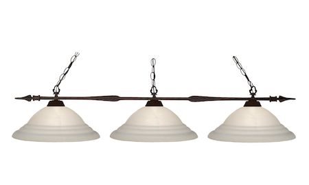 The slim styling of this three light fixture creates a classic yet modern statement. Finished in bronze, this three light fixture uses warm glowing white swirl shades to compliment its classic look, and 72’’ of chain per side is included to ensure the perfect hanging height