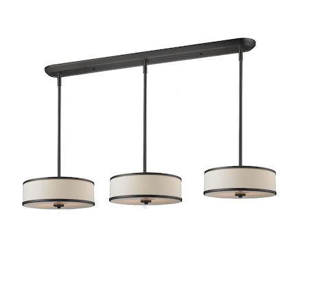 Elegant and contemporary best describe this beautiful nine light fixture. Finished in bronze and paired with cream shades, this nine light fixture would be equally at home in the game room, or anywhere else in the house needing a touch of timeless charm. Adjustable rods are included to ensure the perfect hanging height.