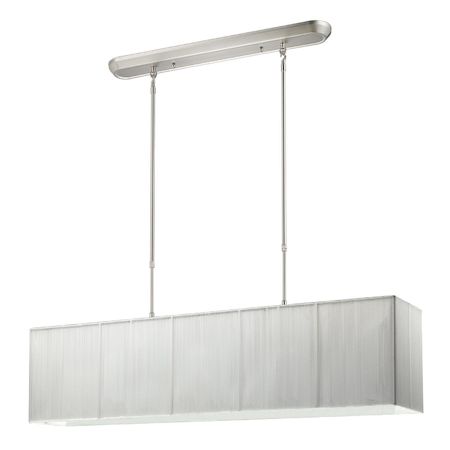 Beautiful white ribbons surround this elegant rectangular fixture which is suspended from telescoping rods finished in brushed nickel to ensure the perfect height.