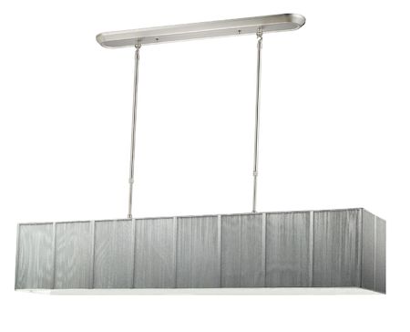Beautiful silver ribbons surround this elegant rectangular fixture which is suspended from telescoping rods finished in brushed nickel to ensure the perfect height.
