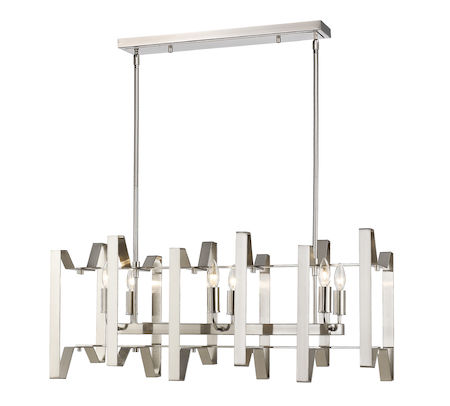 Broad bands of gleaming steel crisply bent in altering patterns frame the clean and contemporary lines of the Marsala family. Finished in Brushed Nickel, these fixtures make a bold statement.