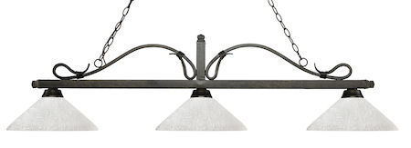 This contemporary three light fixture will complement any decor from traditional living spaces to modern game rooms. Finished in Golden Bronze and paired with Angle White Linen glass shades this fixture exudes a timeless class perfect for all of your lighting needs.