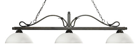 This contemporary three light fixture will complement any decor from traditional living spaces to modern game rooms. Finished in Golden Bronze and paired with Dome Matte Opal glass shades this fixture exudes a timeless class perfect for all of your lighting needs.