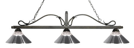 This contemporary three light fixture will complement any decor from traditional living spaces to modern game rooms. Finished in Golden Bronze and paired with Clear Ribbed Glass and Chrome metal and glass shades this fixture exudes a timeless class perfect for all of your lighting needs.