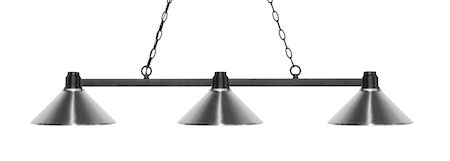 Finished in bronze this three light fixture paired with chrome metal shades uses a low profile silhouette and straight, clean lines to create a sharp and dynamic look. This fixture would be perfect for the gameroom or any other room requiring a sophisticated touch of brilliance.