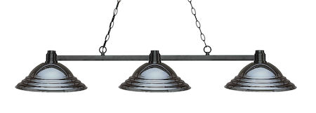 Finished in bronze this three light fixture paired with stepped gun metal shades uses a low profile silhouette and straight, clean lines to create a sharp and dynamic look. This fixture would be perfect for the gameroom or any other room requiring a sophisticated touch of brilliance.