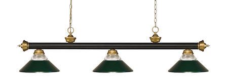 The simple styling of this three light fixture creates a classic statement. Finished in Bronze & Satin Gold, this three light fixture uses half dark green metal, half clear ribbed glass shades to compliment its classic look.