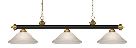 The slim styling of this three light fixture creates a classic yet modern statement. Finished in Bronze & Satin Gold, this three light fixture uses white swirl glass shades to compliment its classic look.