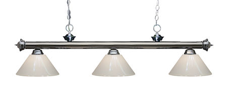 Finished in gun metal this three light bar fixture uses plastic white shades to create a contemporary look with a timeless quality to it. This fixture would be perfect for the game room, or any other room of the house where a touch of under stated sophistication is needed.