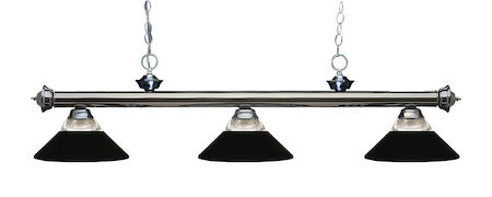 The simple styling of this three light fixture creates a classic statement. Finished in gun metal, this three light fixture uses half matte black metal, half clear ribbed glass shades to compliment its classic look.