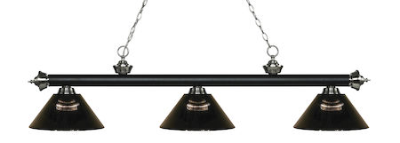 Elegant and traditional best describes this beautiful three light fixture. Finished in Matte Black + Brushed Nickel and paired with Smoke Acrylic shades, this three light fixture would be equally at home in the game room, or anywhere else in the house needing a touch of timeless charm.