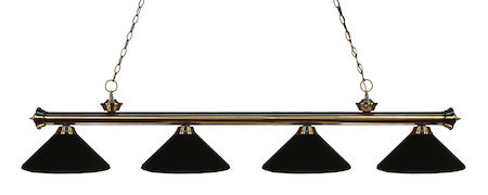 Elegant and traditional best describes this beautiful four light fixture. Finished in antique brass and paired with metal matte black shades, this four light fixture would be equally at home in the game room, or anywhere else in the house needing a touch of timeless charm