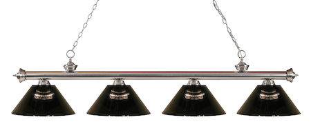 Finished in brushed nickel this four light bar fixture uses acrylic smoke shades to create a contemporary look with a timeless quality to it. This fixture would be perfect for the game room, or any other room of the house where a touch of under stated sophistication is needed.