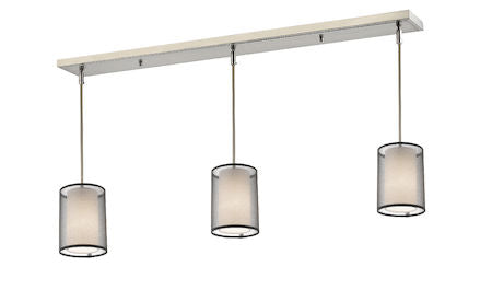 This gorgeous three light fixture offers a soft reflection of contemporary life in the every day. The black transparent outer organza shade allows a glimpse of the ultra white inner shade which emanates a soft glow. The Sedona family is finished with brushed nickel hardware.