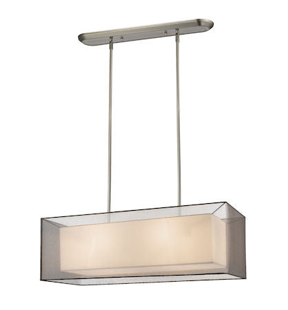 The Sedona family is a soft reflection of contemporary. The black transparent outer organza shade allows a glimpse of the ultra white inner shade which emanates a soft glow. The Sedona family is finished with brushed nickel hardware.
