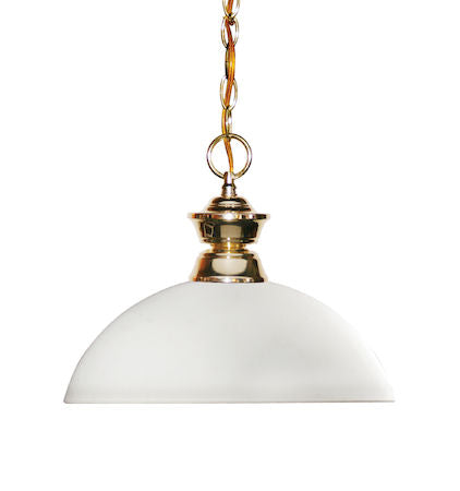 This polished brass styled pendant is equally at home in the games room as well as anywhere else needing a clean, contemporary touch. Paired sleekly with a dome matte opal glass shade, this pendant will be a great addition to any room in the house.